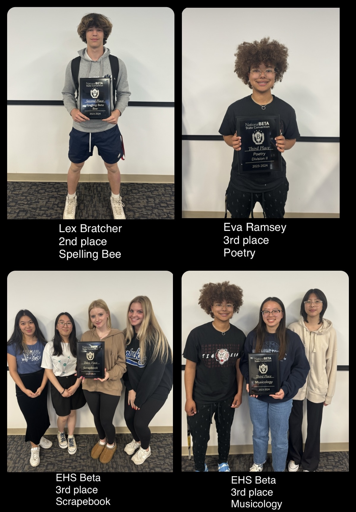 The following students took the I-Excel above-level assessment that is designed for 8th grade students. Prudence, AndiLee, Veer, and Christopher took it as 6th graders last spring of 2023. Areesha and Emersyn took it as 5th graders this spring of 2024. To receive recognition at the TIP-KY awards ceremony, the students have to score at the 95%tile and above in at least one subject area.